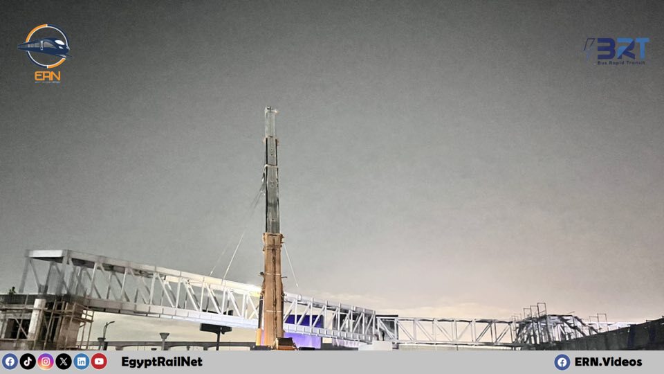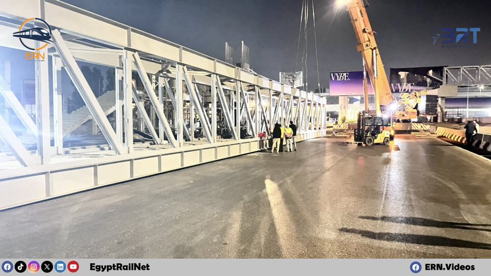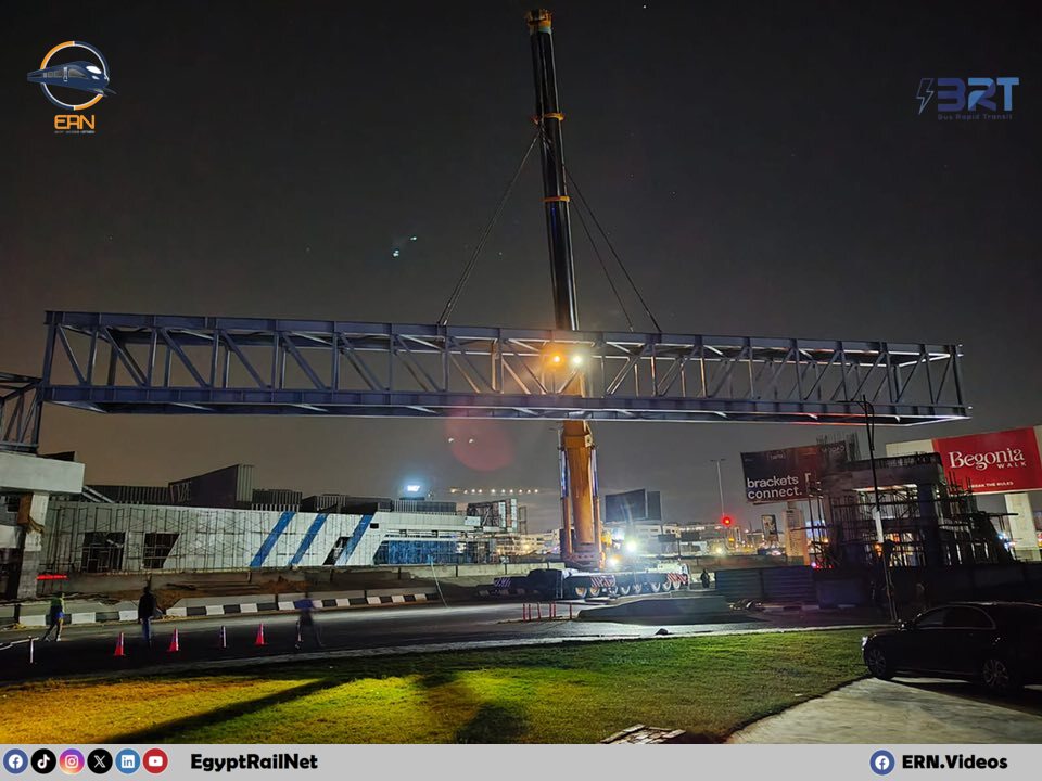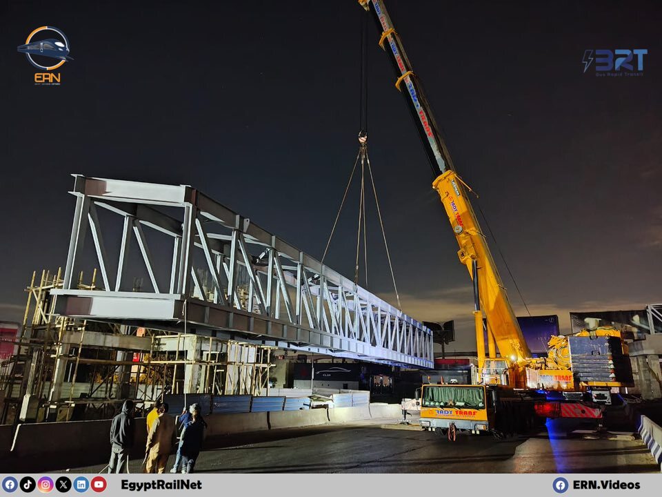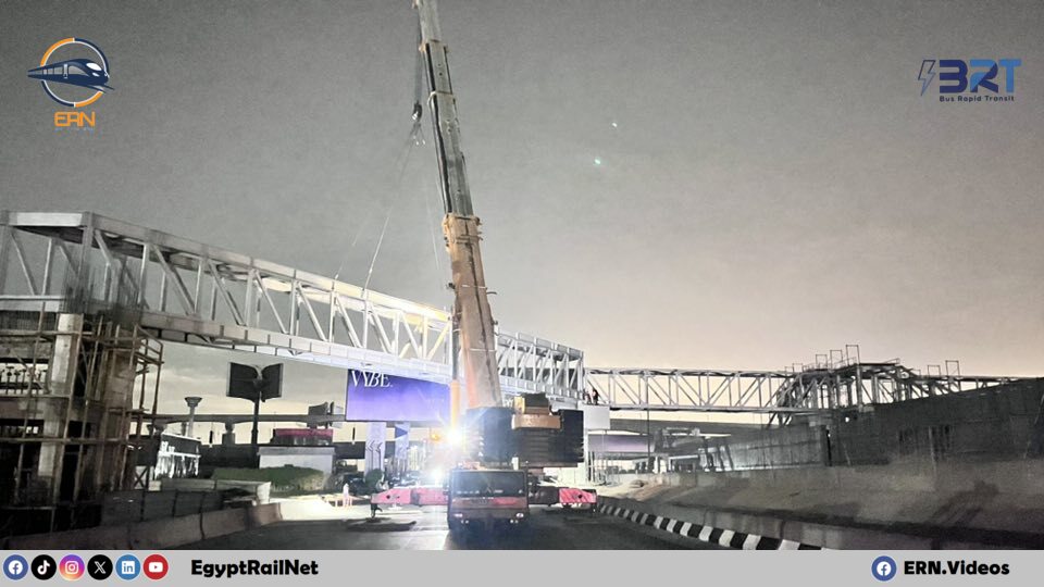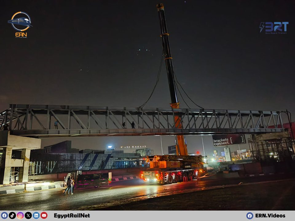 صور لأعمال رفع كوبري المشاة المعدني الخاص بمحطة ” المشير طنطاوي ” للاوتوبيس الترددي , والتى يتم انشاؤها على الطريق الدائري ضمن اعمال المرحلة الثانية لمشروع الترددي BRT.