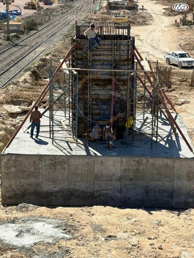 - الأساسات العميقة: يتم تنفيذ الكوبري باستخدام الخوازيق الخرسانية المسلحة التي تصل إلى أعماق كبيرة لضمان استقرار التربة تحت الأحمال الثقيلة.