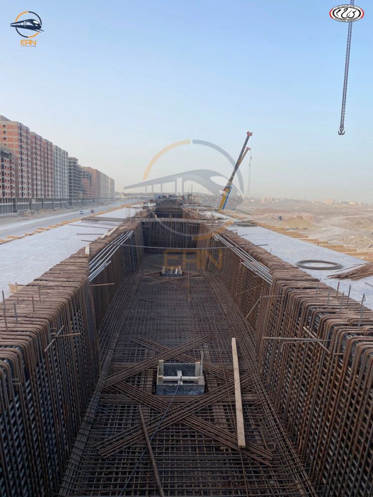 - الكمرات مسبقة الصب: لتقليل وقت التنفيذ وعدم تعطيل حركة الإنشاءات في الخط السريع، يتم الاعتماد على كمرات خرسانية “سابقة الإجهاد” يتم رفعها وتركيبها بدقة متناهية.